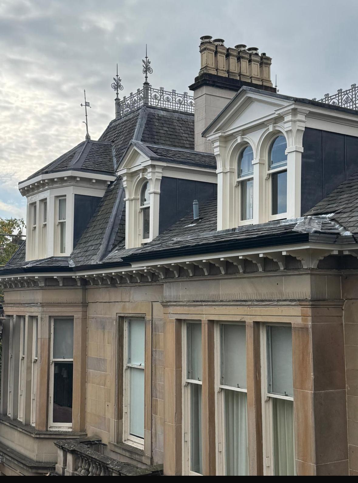 Extensive joinery work carried out to the exterior of the building focusing primarily on the decaying soffit and fascia boards which had decorative dentils and mouldings replaced also which we had to have specially run from our timber supplier to match in with the existing exactly as it is a B listed building. The timber works then continued to structural works that we uncovered that needed to be resolved at the bay windows where we had to strengthen the existing joists and replace where required! The timber works were also required at the dormers to strip back the decaying timber and replaced with new timbers.